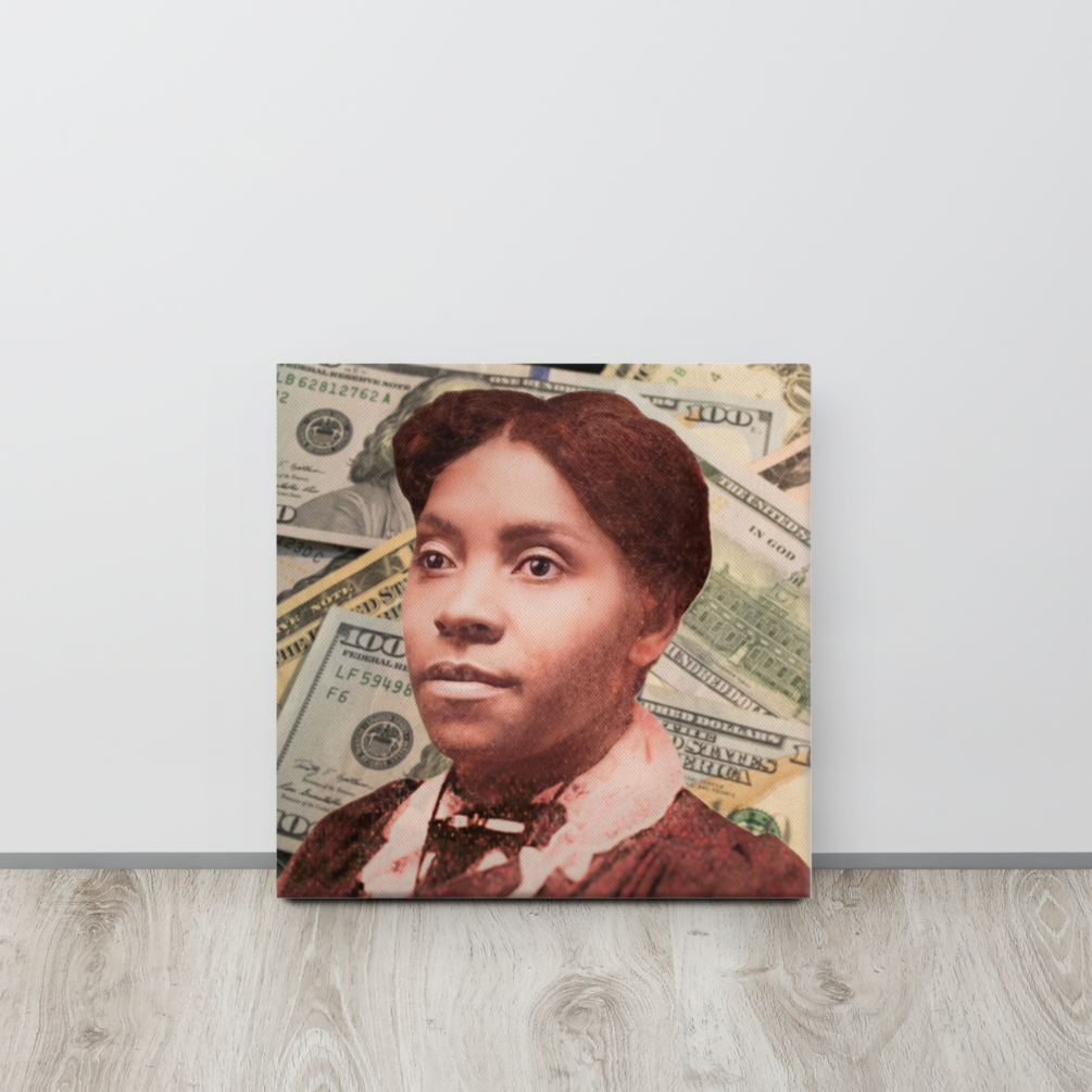 Introducing the iconic 'Callie’s Payday' 16” x 16” Canvas – a stirring tribute to the relentless pursuit of economic justice within Black American lineage. This masterfully crafted canvas features an evocative artistic portrait capturing the essence of Callie Guy House, a trailblazing figure in the legacy of reparations.