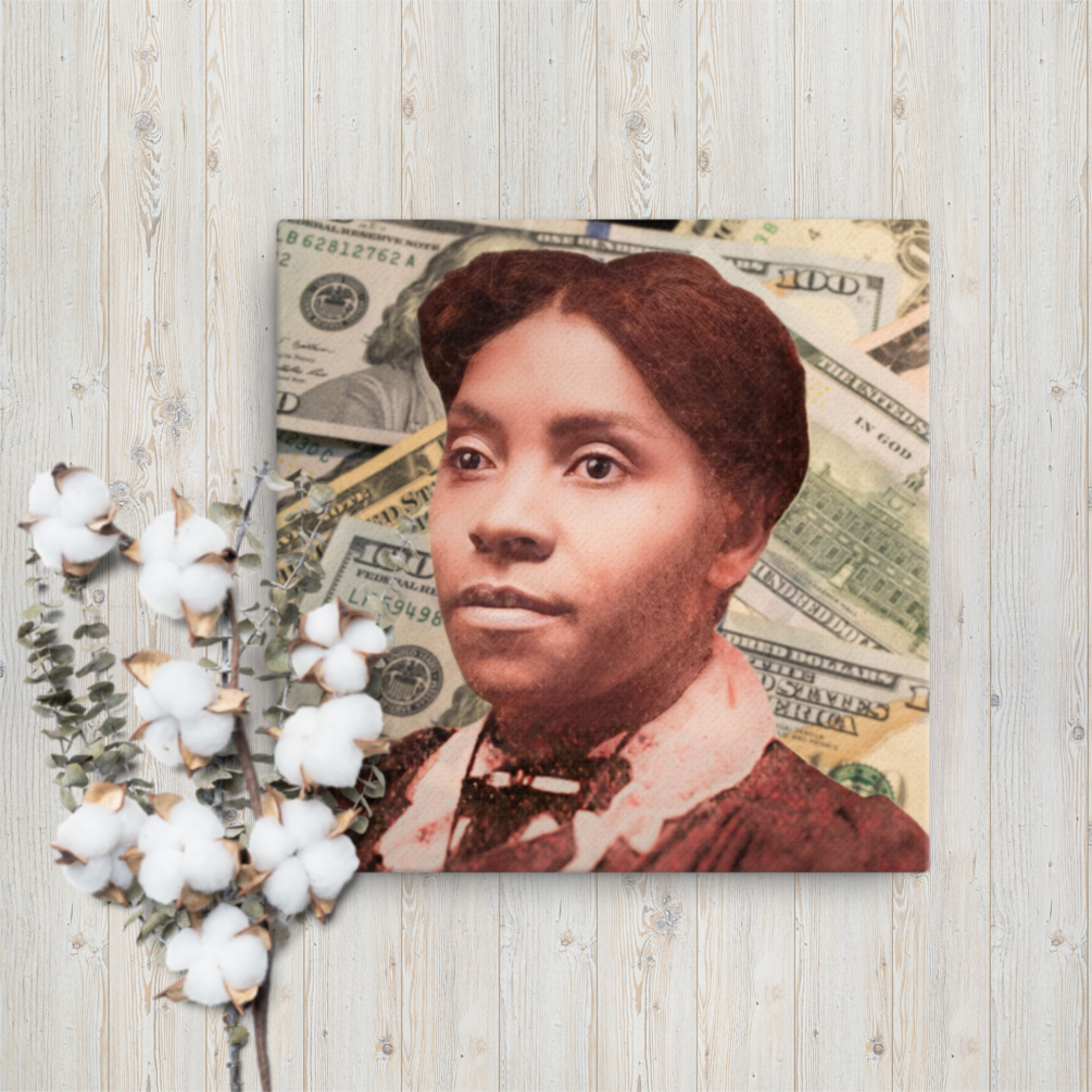 Introducing the iconic 'Callie’s Payday' 16” x 16” Canvas – a stirring tribute to the relentless pursuit of economic justice within Black American lineage. This masterfully crafted canvas features an evocative artistic portrait capturing the essence of Callie Guy House, a trailblazing figure in the legacy of reparations.